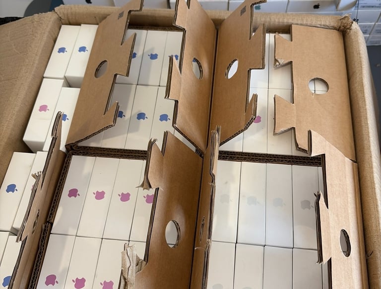 Cada dispositivo se prueba exhaustivamente, se borran datos, se desinfecta y empaqueta individualmente en cajas con su numero de serie/IMEI.