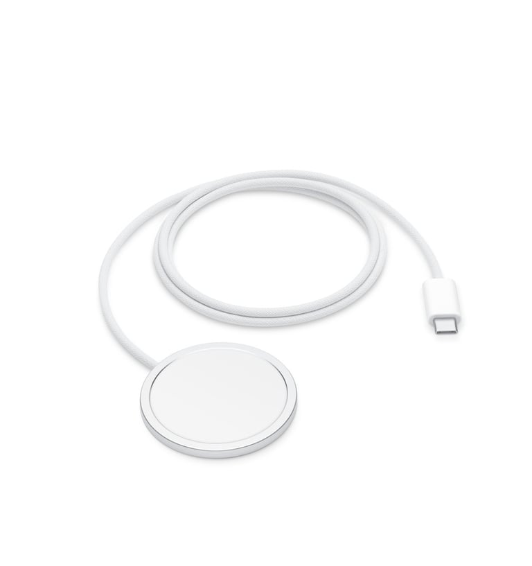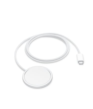 El cargador MagSafe se conecta a tu iPhone 12 o posterior a través de imanes que se alinean a la perfección para brindarte una carga inalámbrica más rápida, de hasta 25 W al usar un adaptador de corriente de 30 W